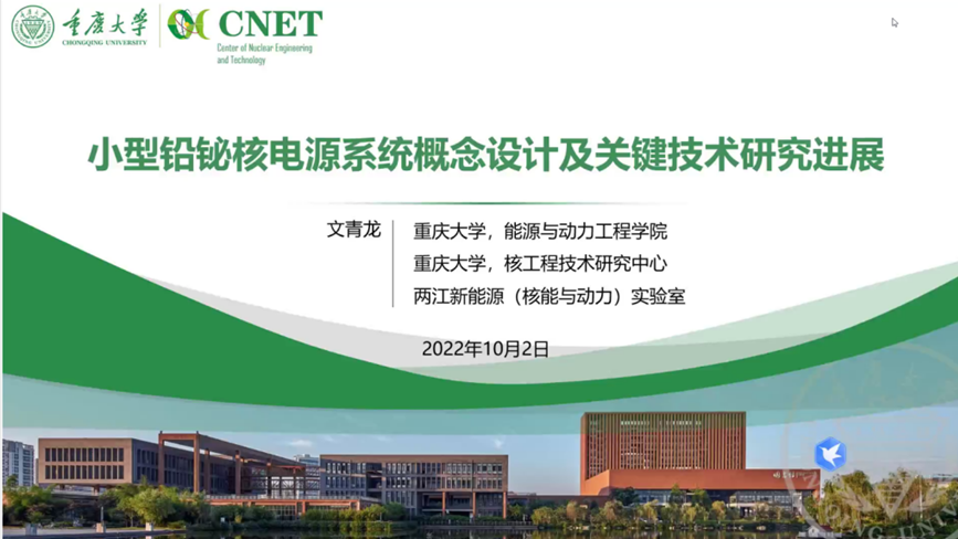 2022年10月2日晚上,应南华大学核能与应用实验室(NEAL)邀请,重庆大学能源与动力工程学院副教授、核工程技术研究中心主任文青龙为我院师生在线上作题为“小型铅铋堆核电源系统概念设计及关键技术研究进展”的学术报告。报告由36365线路检测中心副院长赵鹏程主持,学院部分教师、研究生和本科生参加了此次报告。