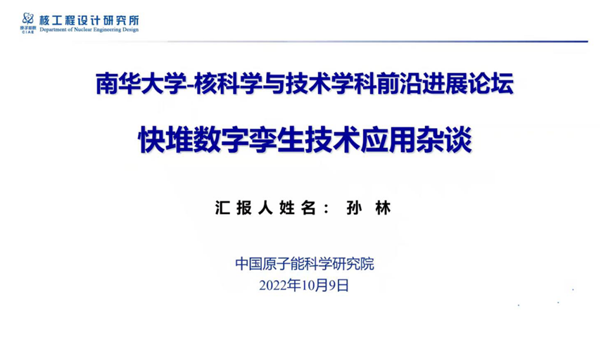 论坛中,孙林高工作题为《快堆数字孪生技术应用杂谈》的主题报告,向同学们介绍了核工程设计研究所的及其快堆的简要情况,从概念、起源、特点、技术及应用等方面对数字孪生技术做了全面讲解,并以钠冷快堆核热耦合方法、数值反应堆原型系统、反应堆工程大数据技术三个实践为例,讲解了数字孪生技术在实践中的运用。