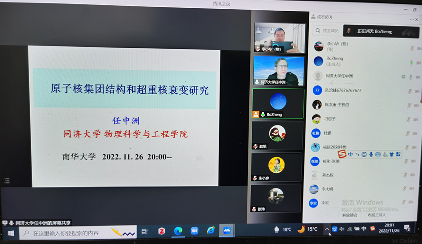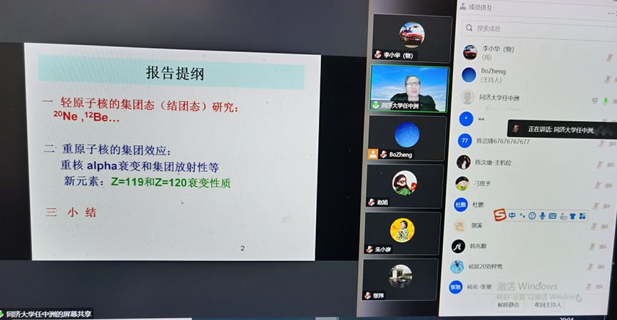 2022年11月26日晚8:00,应36365线路检测中心的邀请,同济大学任中洲教授以线上会议的方式为我院师生做了题为:原子核集团结构和衰变研究的主题报告。学术报告由36365线路检测中心郑波院长主持,近100名师生线上参加此次报告会。