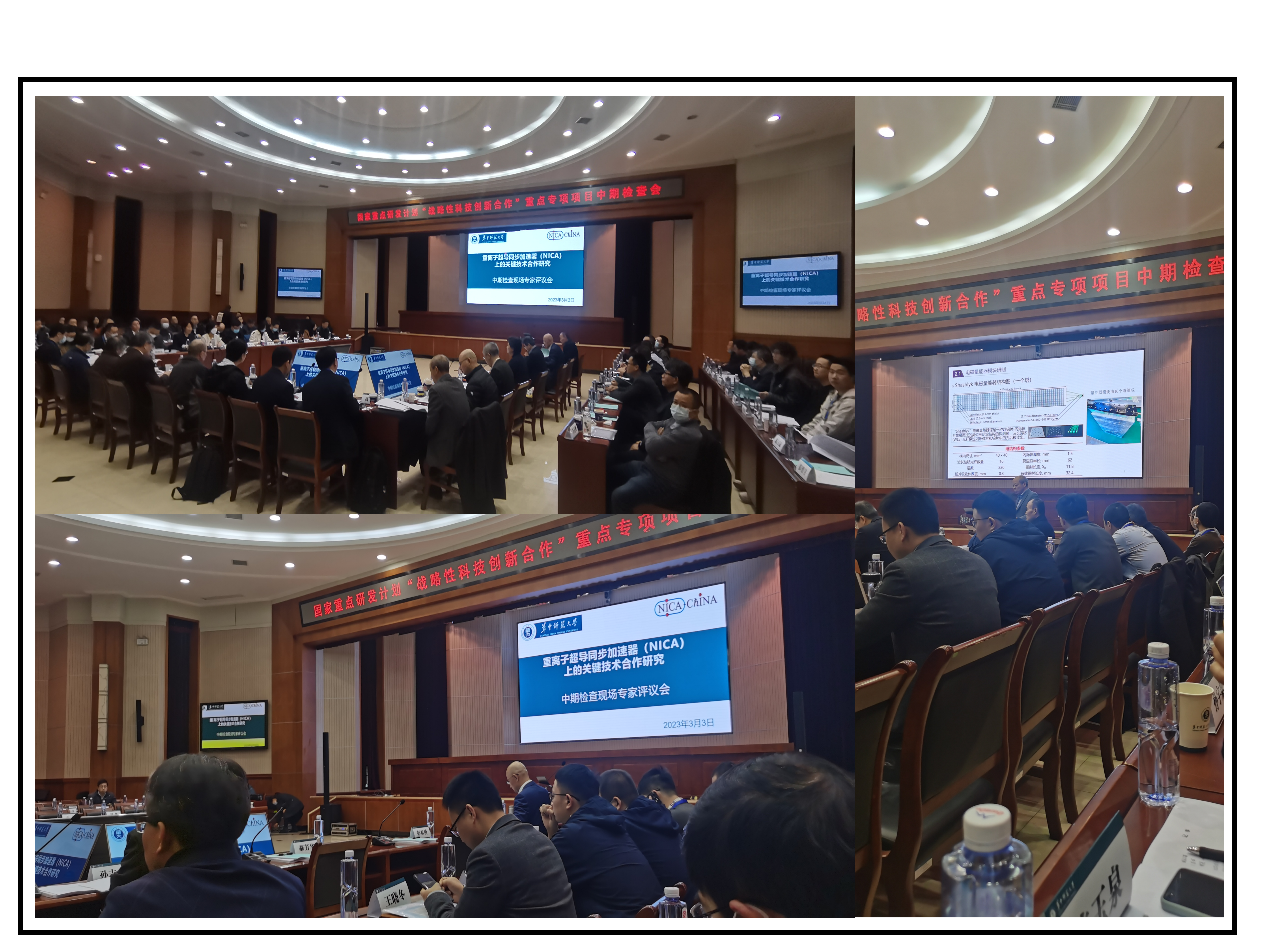 重离子超导同步加速器(NICA)上的关键技术合作研究的中期检查会议已于2023年3月3日在武汉华中师范大学举行。该会议上,清华大学的王义教授代表课题一就MPD/Ecal新型电磁量能器的研制项目进行了中期报告,并获得了在场专家的一致认可。图6为中期检查会议现场。