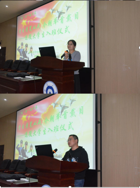 紧接着,班主任代表贺三军老师和辅导员文莉老师表达了对新同学的欢迎,希望他们能够继承和发扬部队里的精神,退伍不褪色,要将军人精神、坚强的意志、自律的作风、坚韧不拔的品质带到今后的大学学习当中。也要求每个班级的同学要积极帮助他们,让他们尽快适应大学生活,跟上学习进度。同时也要学习他们保家卫国的精神,努力学习,打好扎实的专业基础,担负起国家和民族的重任,做一个有责任有担当的新时代大学生,为实现中华民族的伟大复兴的中国梦不懈奋斗。
