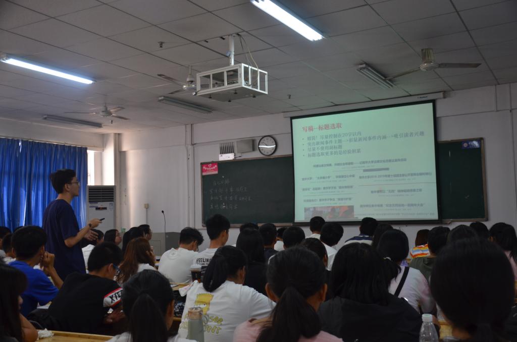 为进一步加强和改进部门新闻宣传工作,提升记者新闻写作能力,了解新闻相关知识,激励更多的新闻爱好者展现新作为。9月28日,核科学技术bet36365路检测中心知识讲座在红湘校区一教414召开,前校团委宣传部副部长王天石、记者团采编部部长龚玉婷受邀担任此次主讲,36365线路检测中心众多宣传部干事及众多新闻爱好者也一同参加本次讲座。