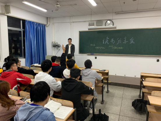 随后,大家积极分享自己的读书心得。学生周子强从余秋雨的《中国戏剧史》一书中领略到了来自中国戏剧的独特美感以及其背后厚重的文化底蕴。王天石从《肖申克的救赎》中,体会到了人的一生应当不断地学习、奋斗,不管人生的路有多难,我们都应该坚持的走下去。而赵渊从《他改变了中国:江泽民传》中领会到了江泽民在我国改革开放历程中所扮演的重要角色,从侧面了解到了我国在20世纪中经历的挑战、负担、困难、视野、抗争以及胜利。随后,刘季沅给大家介绍了《看见》一书,曾胜给向大家分享了图书《围城》,陈轩分享了他最近阅读的《百年孤独》。分享结束后,班级成员交流了自己在读书中的一些感悟,大家发言积极,会议气氛热烈。