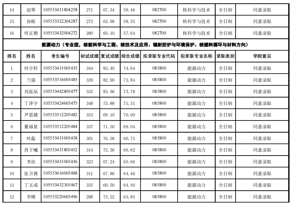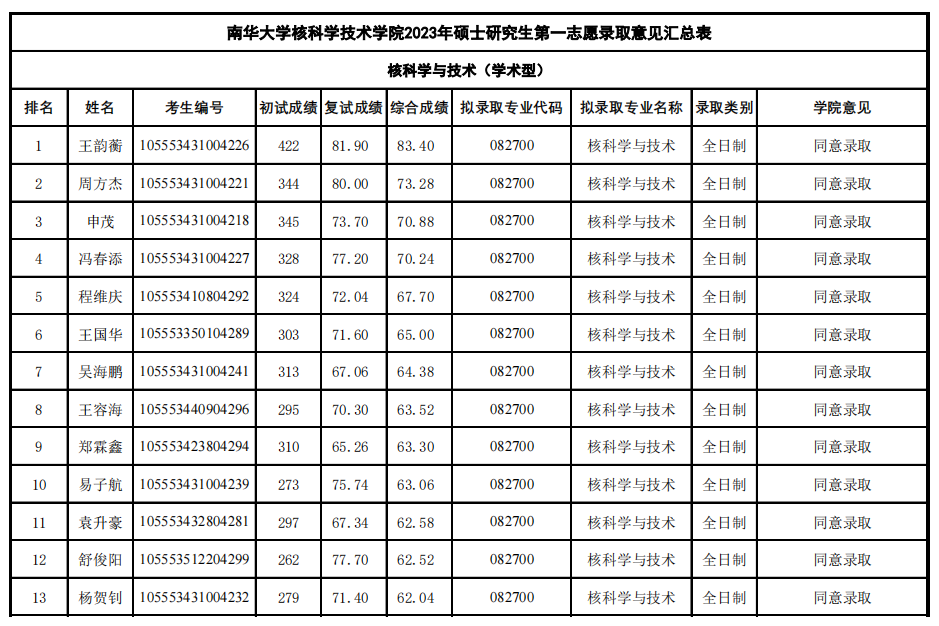 根据教育部、湖南省及南华大学硕士研究生招生录取工作会议精神,2023年4月2日,经学院研究生招生复试小组考核,按学校录取原则,并报学院研究生招生领导小组审核通过,现予公示。对复试成绩及上述同学的建议录取有异议,请以口头或书面形式于2022年4月12日前向学院反映。反映情况要实事求是,具体真实,署真实姓名,以便调查核实。电话:15115443903,联系人:马老师。